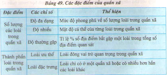Quần xã có các đặc điểm cơ bản về sô lượng và thành phần các loài sinh vật.