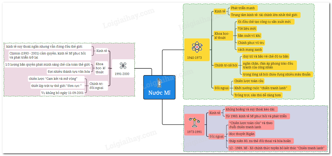 – Những nét cơ bản về tình hình kinh tế, chính trị, khoa học – kĩ thuật và chính sách đối ngoại của Mĩ trong giai đoạn 1991 – 2000.