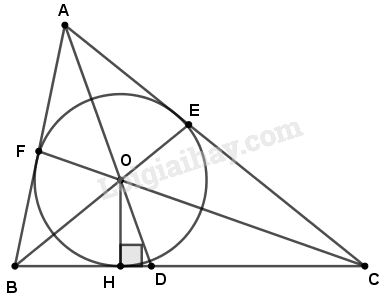 Vậy \((O;OH)\) tiếp xúc với các cạnh \(AB,BC,CA\) hay  AB, AC, AD đều là tiếp tuyến của đường tròn (O ; OH).