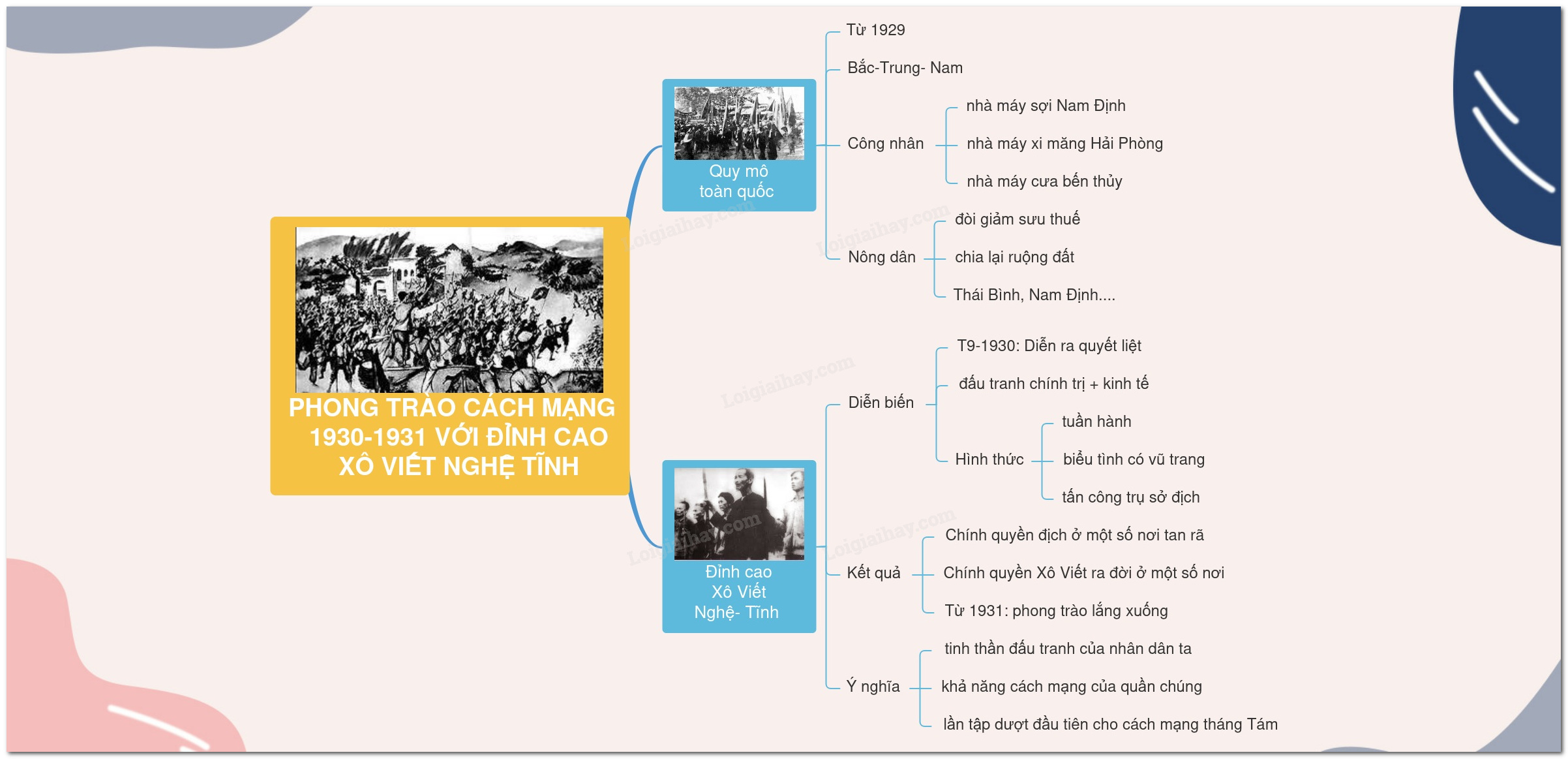 Sơ đồ tư duy Phong trào cách mạng 1930 – 1931 với đỉnh cao Xô viết Nghệ Tĩnh