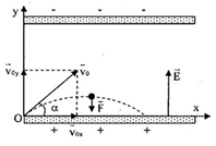 • Theo phương \( \bot \overrightarrow E \) : Chuyển động đều với vận tốc \({v_ \bot } = {v_0}\sin \alpha \)