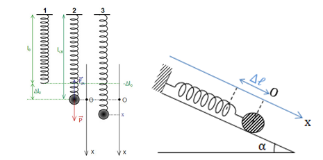– Khi con lắc lò xo bố trí thẳng đứng hoặc nằm nghiêng một góc αvà treo ở dưới.