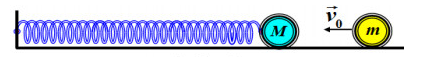 Vật m chuyển động với vận tốc v0 đến va chạm vào vật M đang đứng yên.