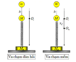 – Va chạm mềm: \(m{v_0} = (m + M)V \Rightarrow V = \frac{1}{{1 + \frac{M}{m}}}{v_0}\)