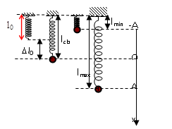 + Chiều dài cực tiểu của lò xo: \({l_{{\rm{min}}}} = {l_0} + \Delta {l_0} – A\)
