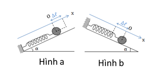 • Con lắc lò xo nằm nghiêng góc α: \(\Delta {l_0} = \frac{{mg\sin \alpha }}{k}\)