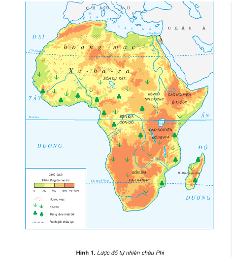 Quan sát hình 1, cho biết: Châu Phi giáp các châu lục, biển và đại dương nào?