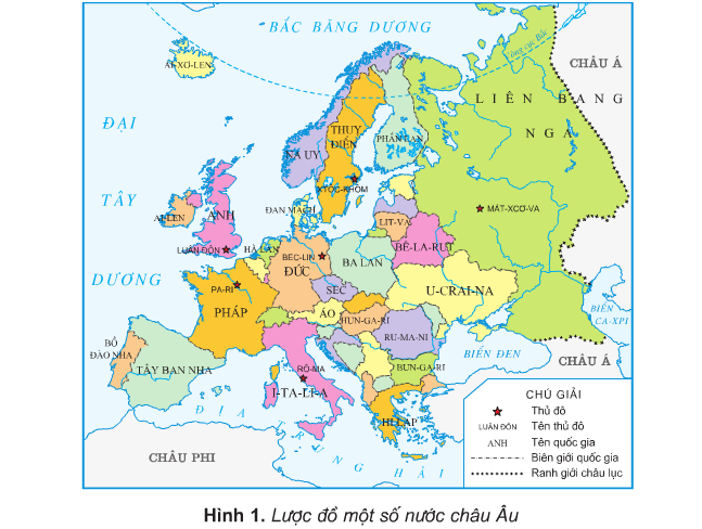 Quan sát hình 1, hãy tìm vị trí địa lí và đọc tên thủ đô nước Pháp.