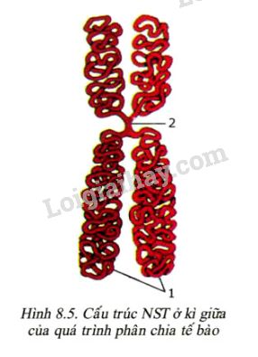 Quan sát hình 8.5 và cho biết các số 1 và 2 chỉ những thành phần cấu trúc nào của NST