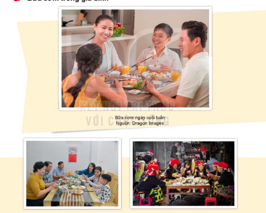 Quan sát và mô tả hình ảnh bữa cơm trong những bức ảnh trên