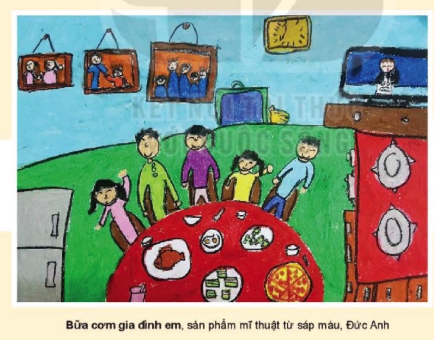 – Em sẽ dùng hình ảnh gì để thể hiện về chủ đề Bữa cơm gia đình?
