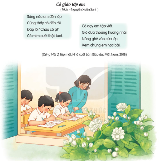 Theo em, hình ảnh cô dạy em tập viết ấn tượng nhất, bởi khung cảnh trong thơ hiện lên như 1 bức tranh vậy: cô dạy em viết, có gió, có hương hoa nhài và có nắng rực rỡ chiếc vào lớp.