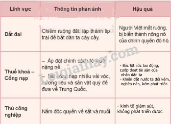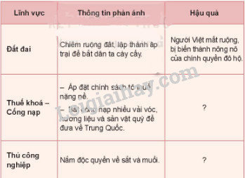 Em hãy cho biết chính sách cai trị của các triều đại phong kiến phương Bắc đối với nước ta (theo bảng dưới đây).