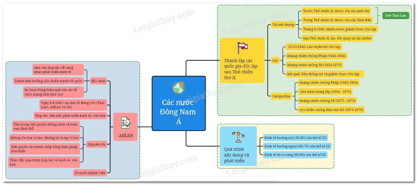 Sự ra đời của tổ chức ASEAN: bối cảnh thành lập; Mục tiêu, nguyên tắc hoạt động và mối quan hệ giữa 3 nước Đông Dương với ASEAN.