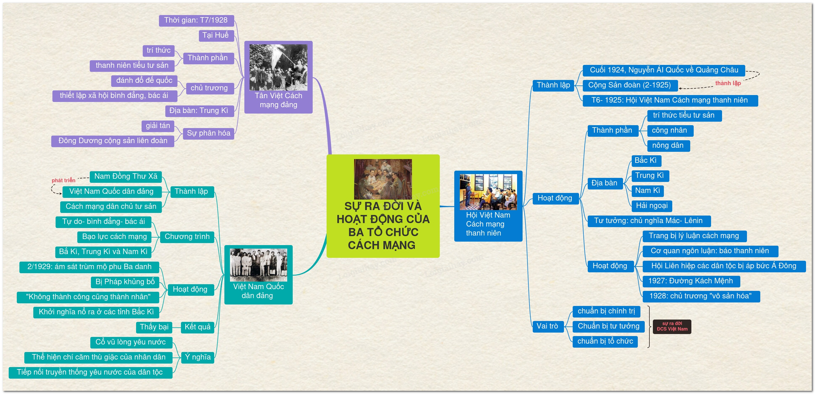 Sơ đồ tư duy Sự ra đời và hoạt động của ba tổ chức cách mạng