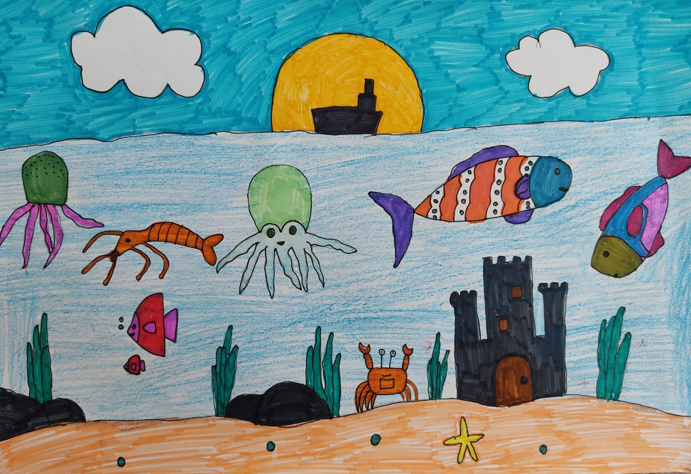 Tạo sản phẫm mỹ thuật về sự sống dưới đại dương theo ý thích của nhóm