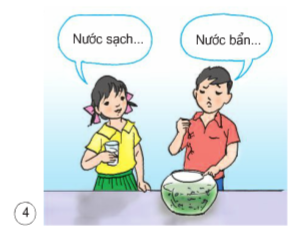 Em hãy quan sát bức tranh và liên hê thực tế theo em thế nào là nước sạch? Hàng ngày em có uống nước không?