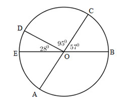 1. Tìm số đo góc ở tâm \(\widehat {EOA}\) góc \(\widehat {AOB}\) trong hình sau, cho biết AC và BE là hai đường kính.
