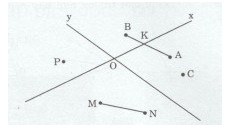 4. Giao điểm của đoạn thẳng AB với đường thẳng x là K, đoạn thẳng MN với đường thẳng y không có giao điểm.