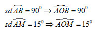 \(\Rightarrow \widehat {MOB} = \widehat {AOB} – \widehat {AOM} = {90^0} – {15^0} = {75^0}\)