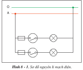 – Mạch có 2 nhánh mắc song song nhau, mỗi nhánh có cầu chì, công tắc và đèn mắc nối tiếp nhau.