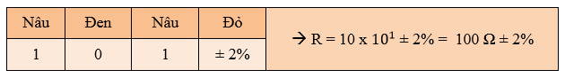Ví dụ: Một điện trở có các vòng màu là nâu, đen, nâu và đỏ:
