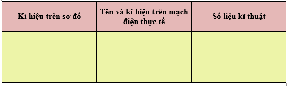 Ghi tên các linh kiện và số liệu kĩ thuật của chúng vào bản báo cáo thực hành.