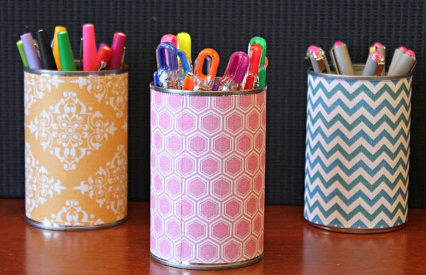 Em có thể tạo hộp bút bằng các sản phẩm hình khối như lon sữa, lõi giấy vệ sinh, hộp kẹo, vv… Hoặc bằng giấy gấp.