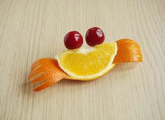 Em tự tạo hình con cua bằng hoa quả nhà em có sẵn