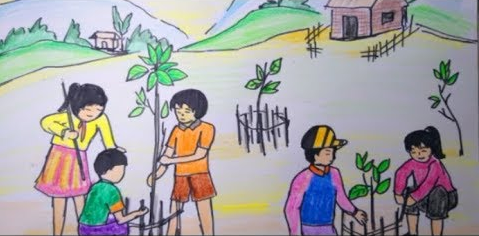 Em vẽ 1 ngày của em ở trường, thực hiện hoạt động trồng cây xanh cùng các bạn