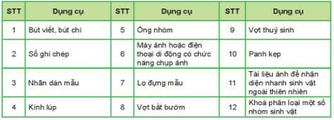– Chụp ảnh, ghi chép lại các thông tin tên loài, môi trường sống, số lượng, kích thước các loài.