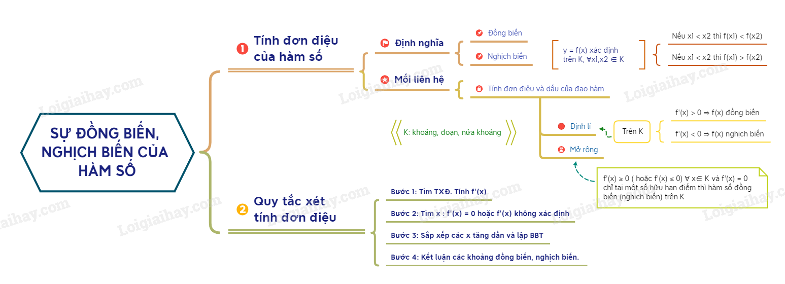 – Hàm số tăng hoặc giảm trên \(K\) được gọi chung là hàm số đơn điệu trên \(K\).