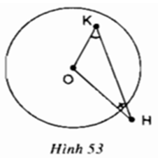 Trên hình 53, điểm H nằm bên ngoài đường tròn (O), điểm K nằm bên trong đường tròn (O). Hãy so sánh \(\widehat {OKH}\)\(\widehat {OHK}\)