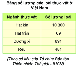 Quan sát bảng nhận xét về số lượng các loài thực vật ở nước ta.