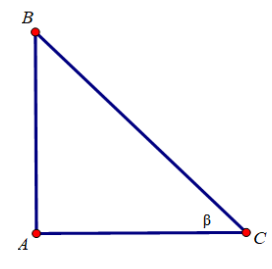 \(\eqalign{& \sin \beta  = {{AB} \over {BC}}  \cr & \cos \beta  = {{AC} \over {BC}}  \cr & tg\beta  = {{AB} \over {AC}}  \cr & cotg\beta  = {{AC} \over {AB}} \cr} \)