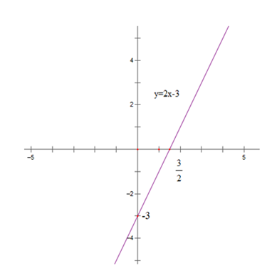 Vẽ đường thẳng đi qua hai điểm có tọa độ \((0;-3)\) và \((\dfrac{3}2;0)\) ta được đồ thị hàm số \(y=2x-3.\)