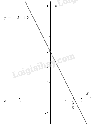 Vẽ đường thẳng đi qua hai điểm có tọa độ \((0;3)\) và \((\dfrac{3}2;0)\) ta được đồ thị hàm số \(y=-2x+3.\)