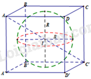 Bán kính mặt cầu là \(OA = \displaystyle{1 \over 2}AC’\)