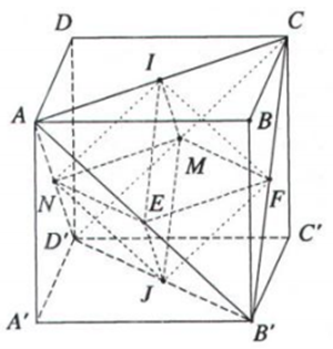 Chứng minh rằng \(AB’CD’\) là một tứ diện đều. Tính các cạnh của nó theo \(a\).