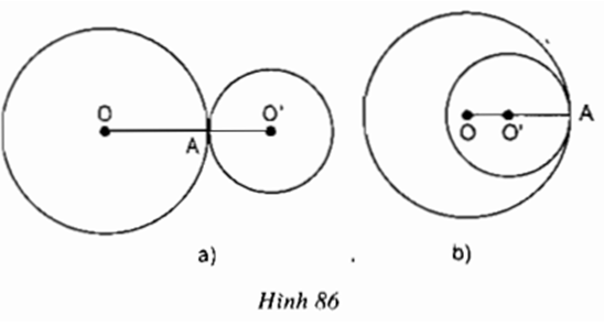 b) Hình 86a) Hai đường tròn tiếp xúc ngoài thì A nằm giữa O và O’