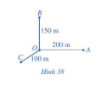 Bạn Thu vẽ sơ đồ đường đi từ nhà mình ( điểm O) đến vị trí ba hiệu sách A,B,C như Hình 38. Ba đường nối từ O đến các điểm A,B,C gợi nên hình ảnh gì? Các số đo độ dài 200m, 150m, 100m nói lên điều gì?