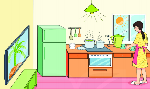 – Ấm nước đã sôi nhưng không rút điện.