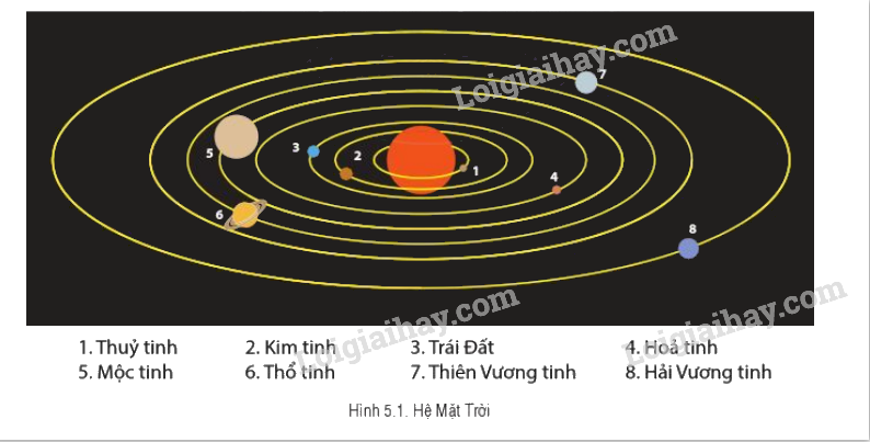Quan sát hình 5.1. Hệ Mặt Trời trong SGK.