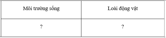 Các loài động vật có thể sống ở đâu? Hãy kể tên một số loài động vật sống ở những nơi đó và hoàn thành bảng theo mẫu sau: