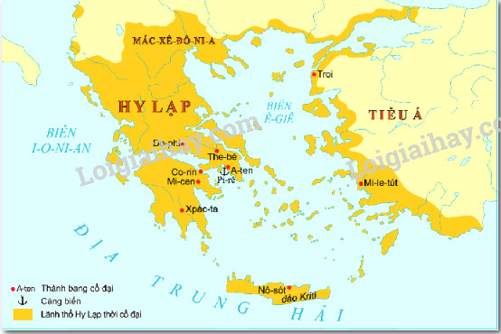 Quan sát lược đồ, em hãy cho biết vị trí địa lí của Hy Lạp cổ đại có điểm gì nổi bật?