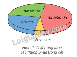 1. Quan sát hình 2, cho biết đất bao gồm những thành phần nào. Thành phần nào chiếm tỉ lệ lớn nhất trong đất? 2. Tạo sao chất hữu cơ chiếm tỉ lệ nhỏ trong đất nhưng lại có ý nghĩa quan trọng đối với cây trồng?