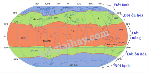 Hình 22.2. Các đới thiên nhiên trên Trái Đất