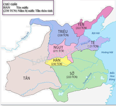 Sơ đồ tiến trình thống nhất Trung Quốc của Tần Thủy Hoàng: