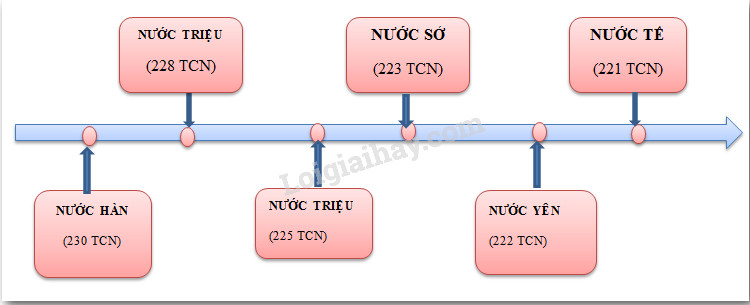 Quan sát lược đồ hình 8.3, hãy vẽ sơ đồ các mốc thời gian chủ yếu trong tiến trình Tần Thủy Hoàng thống nhất Trung Quốc.