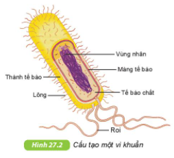 Quan sát hình 27.2, trình bày cấu tạo của tế bào vi khuẩn.